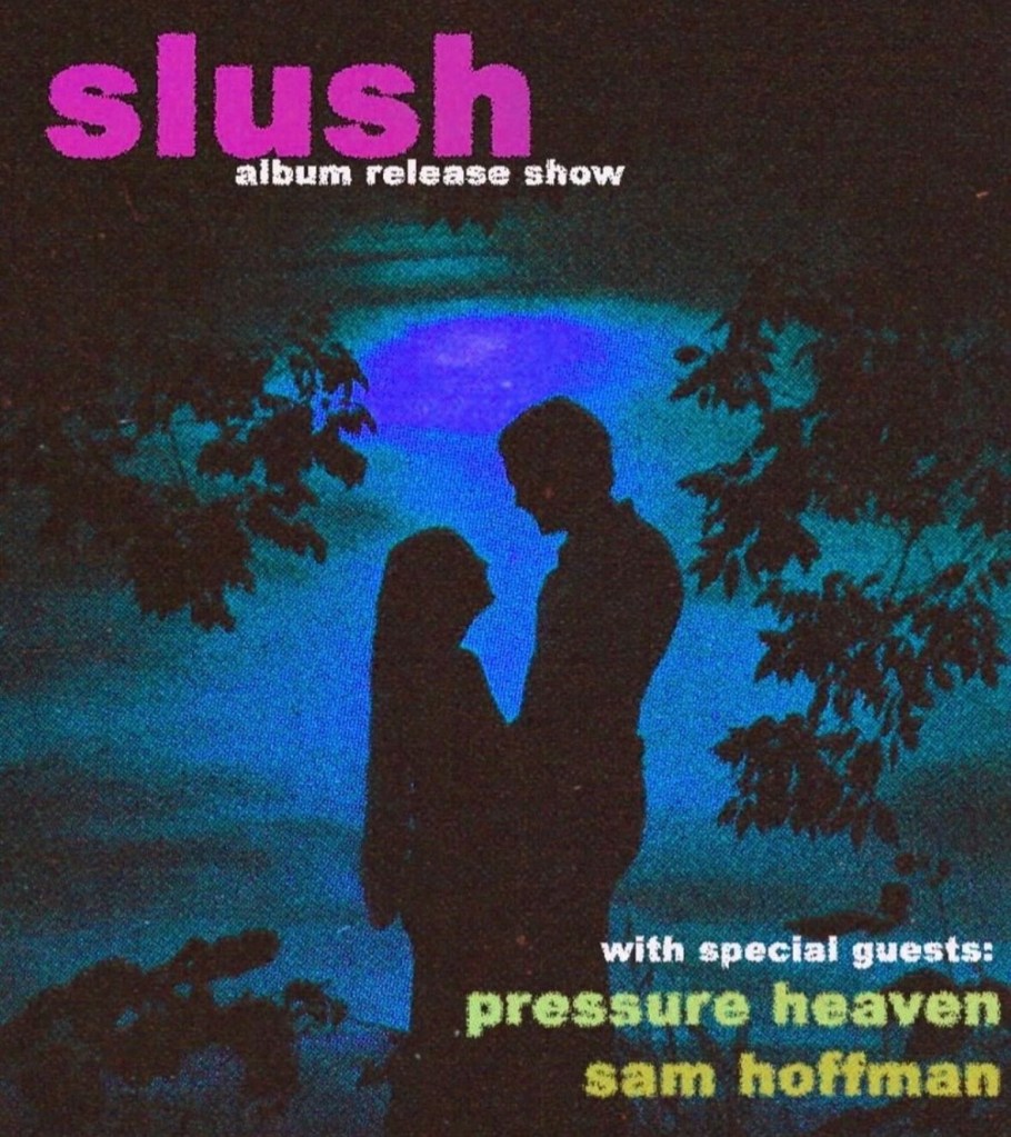Hey there, hope yr well! Listen—it’s SLUSH, SAM HOFFMAN, and PRESSURE HEAVEN tonight at the illustrious SOFT JUNK. SLUSH just put out another fantastic EP titled #3 via TOGO RECORDS. There’s a special quality about any band’s third project: Big Star’s Third is some of their best, and we all know A Hard Day’s Night has some of the best Beatles songs. SLUSH is no exception to this: Maxwell’s latest sonic foray is beautiful. SAM HOFFMAN is the local hitmaker in town who hasn’t missed yet—dig into BOOKS ON TAPE, Sam’s incredible sophomore LP that was released late last year. PRESSURE HEAVEN has been making waves the past year as well, with three incredible singles under their belt (3!) and a much talked-about live show. I’m gonna pull up tonight after I get off work. See you there!!!