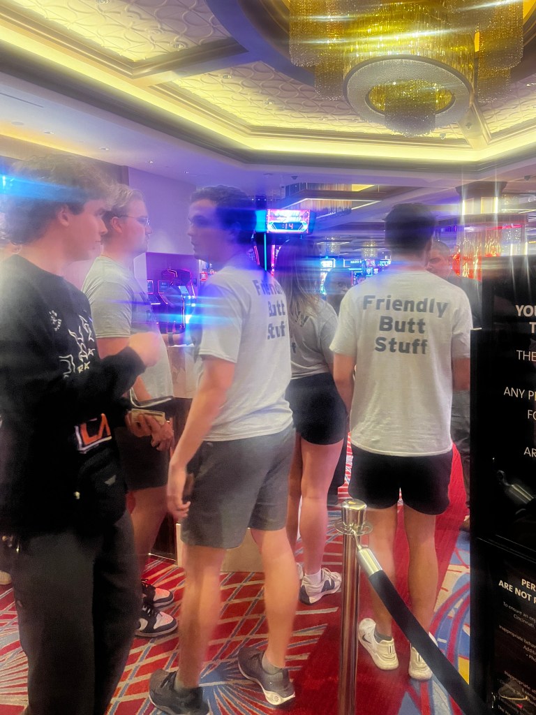 Right after the show we drove up to Cincinnati to the Hard Rock Casino, to celebrate Spodee’s birthday. I lost $40 and bowed out instantly. BUT! Blair won some coin and we also met some frat guys with “FRIENDLY BUTT STUFF” plastered on the back of their shirt.